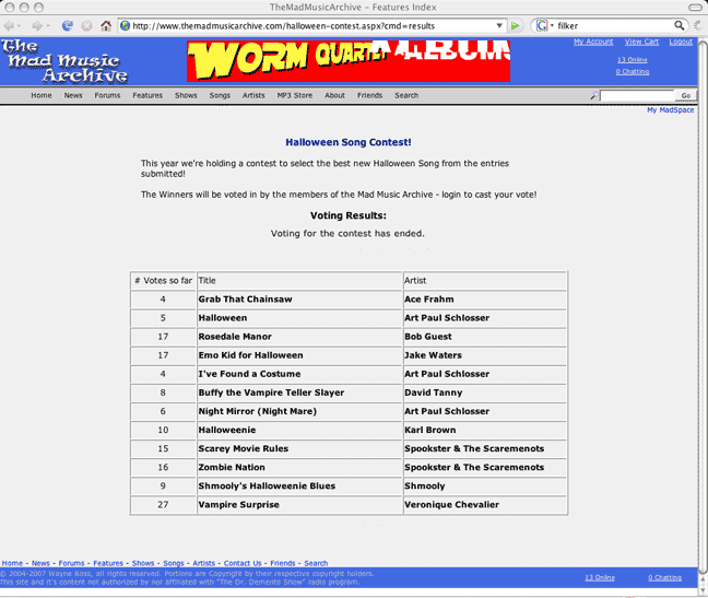 * Seattle's Headcase Radio: HeadCaseRadio.com * All Accordion Radio: AccordionNoir.org * DementiaRadio.org: Revenge of The Particle Show * Tess's Indie-Wave Radio: live365.com/stations/horrorfreak13 * Lestats120Minutes Radio: live365.com/stations/lestats120minutes * Hallows Gate 10/31 Radio: live365.com/stations/kingofhalloweenlon * Dark Requiem Radio: live365.com/stations/djeternaldarkness * Comedy New & Old Radio: live365.com/stations/ezeriah * Welcome To Weirdsville Radio: live365.com/stations/ozrock * E.M.Z.T. Radio: live365.com/stations/devilynn * Van Richter Radio: live365.com/stations/vanrichter2 * Waiting For The Blackouts Radio: live365.com/stations/c_death? * Inferus Moon Radio: live365.com/stations/inferusmoonv2 (Haul-E-Weird) |