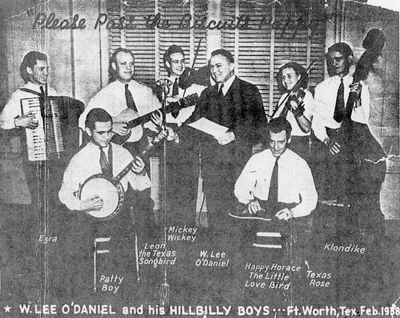 One bit of trivia: While running for Governor in 1938, O'Daniel never made a campaign speech--he simply advertised where he and the Light Crust Doughboys would be appearing and at the end of his show would simply ask for the vote on Election Day.