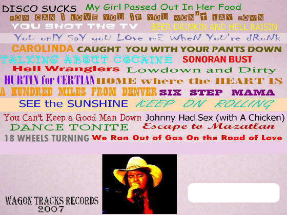 fiogf49gjkf0d I, Chuck Wagon Maultsby, sold the rights to the name: CHUCK WAGON AND THE WHEELS to a Nashville band that got charted in 2000 with a song called "BEAUTY'S IN THE EYES OF THE BEER HOLDER" off of their OFF THE TOP ROPE cd.....so there is some confusion