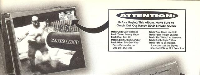 | from Mad #379. from the article Even Yet Still More Badly Needed Warning Labels for Rock Albums. |