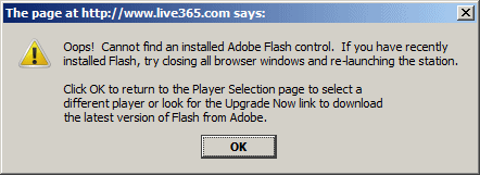 | Live 365 Error |