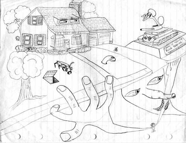 | I drew this when I was in high school. There are quite a few bizarre details in this. And, no --- I have never used illegal drugs. |