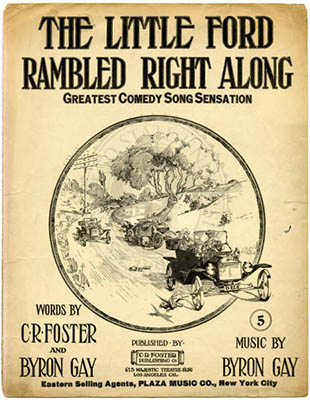 [chorus 5] And the little old Ford, it rambled right along, And the little old Ford, it rambled right along, The street car ran with an empty house, For everybody rode on the little "road louse," The street car people nearly had a fit, But the blamed little Ford, it didn't care a bit, When you want to get some graft, Just load up your funny craft, And the little Ford will ramble right along. (Hatman) |