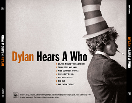 Kevin Ryan, a 33-year-old Houston music producer and author, went into his home studio and engineered a sort of retro mash-up of two of his favorite artists, Bob Dylan and Dr. Seuss. Ryan took the text from seven Seuss classics, including "The Cat in the Hat" and "Green Eggs and Ham," and set them to original tunes that sounded like they were right off Dylan's mid-'60s releases. He played all the instruments and sang all the songs in Dylan's breathy, nasal twang. He registered a domain name, dylanhearsawho.com, and in February 2007 posted his seven tracks online, accompanied by suitably Photoshopped album artwork, under the title "Dylan Hears a Who." "Green Eggs and Ham" was set to a tune and arrangement somewhere between "Highway 61 Revisited" and "Subterranean Homesick Blues," complete with Dylan's rushed, occasionally sneering phrasing. Then Dr. Seuss Enterprises, the La Jolla, Calif., firm that publishes the works of the late Theodor Geisel, heard "Dylan Hears a Who." Only two weeks after word of the site began spreading, Ryan got a cease-and-desist demand from the Seuss lawyers, who said the site and songs infringed the company's copyrights and trademarks. Ryan complied quickly and quietly. Instead of the Dylan/Seuss tracks, visitors to dylanhearsawho.com found a brief message saying the site had been "retired" at the request of Dr. Seuss Enterprises. | - Dave AuJus |