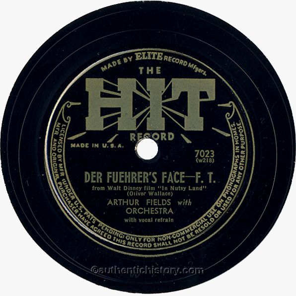 Ven Der Fuehrer says ve iss der master race Ve heil, heil, right in Der Fueher's face But someday in Hell, he'll be right in his place Zen ve'll heil, heil, right in Der Fuehrer's face! (Stavro Arrgolus) |