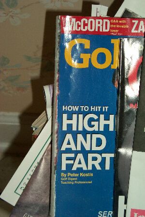 | This golf magazine was in a not-so-neatly-stacked pile in our bathroom. I noticed that certain letters happened to be covered up to reveal a strange new name for an article in the magazine. |